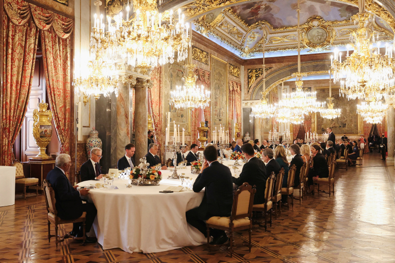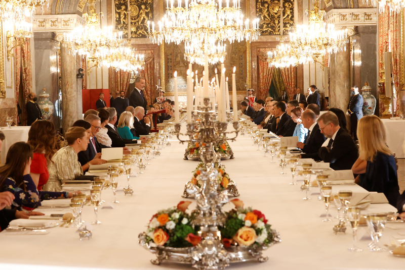 İspanya Kralı 6. Felipe, yemekte yaptığı konuşmada, Finlandiya, İsveç ve Türkiye arasında imzalanan üçlü memoranduma atıfta bulunarak, Erdoğan, Niinistö, Andersson ve Stoltenberg'in "hayırlı bir iş için" yemeğe katılamadıklarını söyledi.