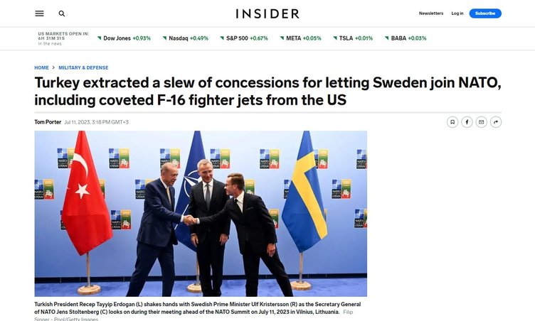 Türkiye ve Başkan Recep Tayyip Erdoğan'ın hamleleri tüm dünyanın gündemine oturdu. ABD'li Business Insider Türkiye'nin bir dizi taviz aldıktan sonra İsveç'in üyeliğine yeşil ışık yaktığını yazdı.