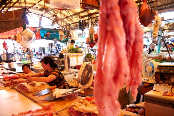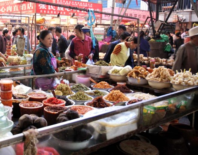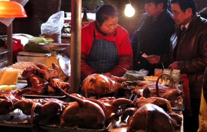 Huanan pazarı, buranın yerlilerinin uğrak noktalarından biri olarak nitelendiriliyor. Özellikle etini "taze" satın almak isteyenler buraya geliyor ve satın alacağı hayvanı hemen o anda kestiriyor. Canlı hayvanlar, bu pazardaki küçük kafeslerde tutuluyor ve müşterinin talebine göre kesiliyor.