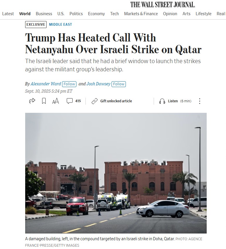 Wall Street Journal'ın özel haberine göre, Trump, saldırıyı ABD ordusundan öğrenmiş ve İsrail'in ABD'nin bilgisi dışında hareket etmesinden rahatsızlık duymuştu.