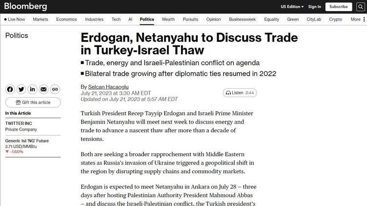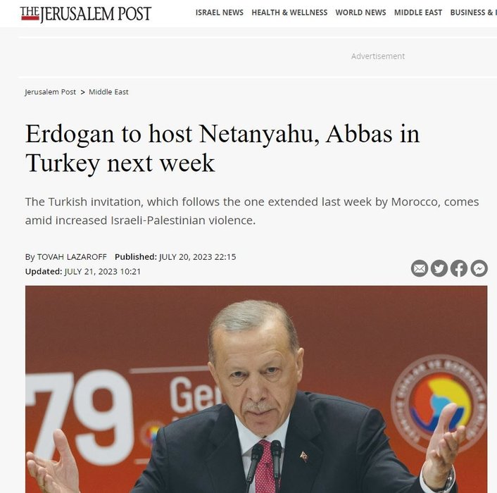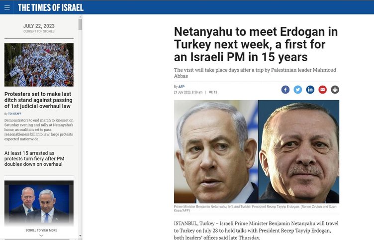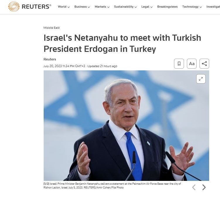 Reuters'ta yer alan haberde ise, Başkan Erdoğan ve Netanyahu görüşmesinin ay sonunda gerçekleşeceği vurgulandı. İki ülke arasında on yılı aşkın bir süre sonra ilk kez bir görüşme gerçekleşeceğine dikkat çekildi.