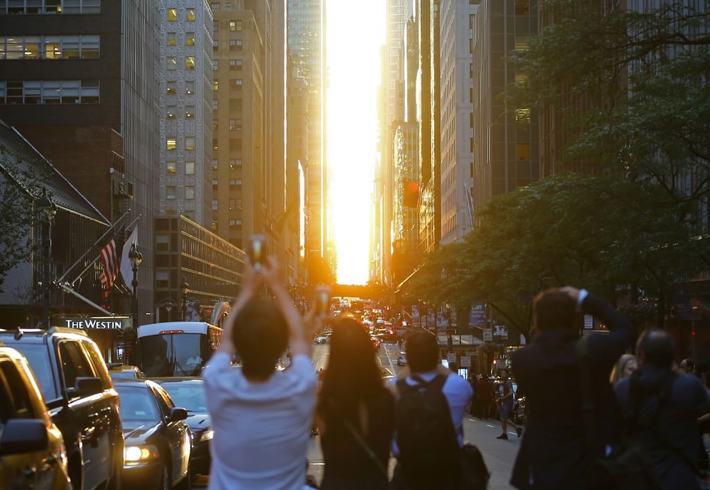 Yılda sadece dört kere meydana gelen ve "Manhattanegde" olarak adlandırılan güneşin 42. caddedeki binaların arasından batışına New Yorklular yoğun ilgi gösterdi.
