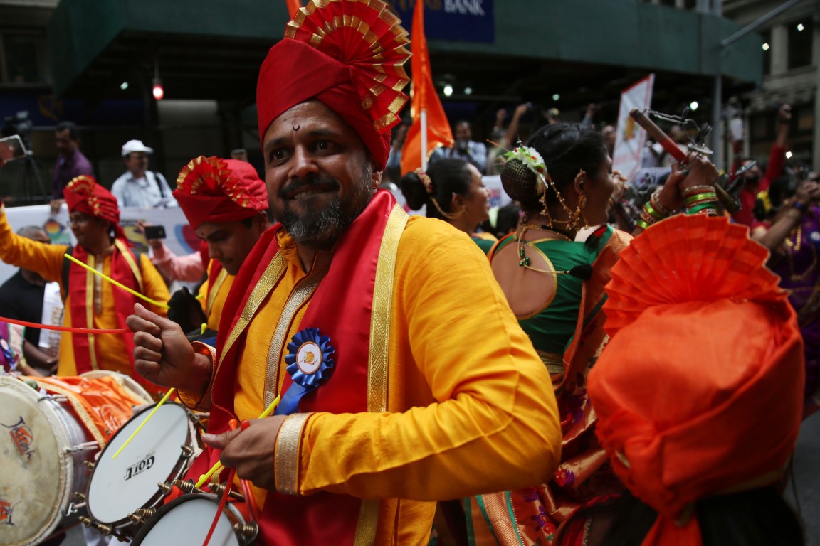 Geleneksel çalgıları ve renkli kıyafetleri ile New York sokaklarını dolaşan Hintliler, New York sokaklarında Hindistan rüzgarı estirdi.