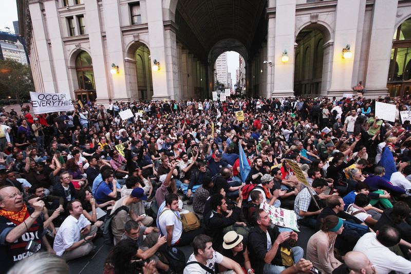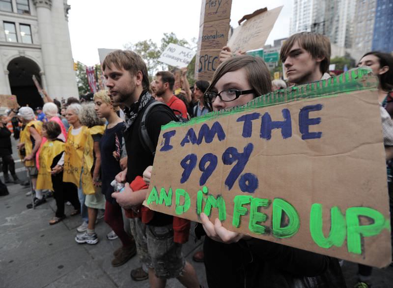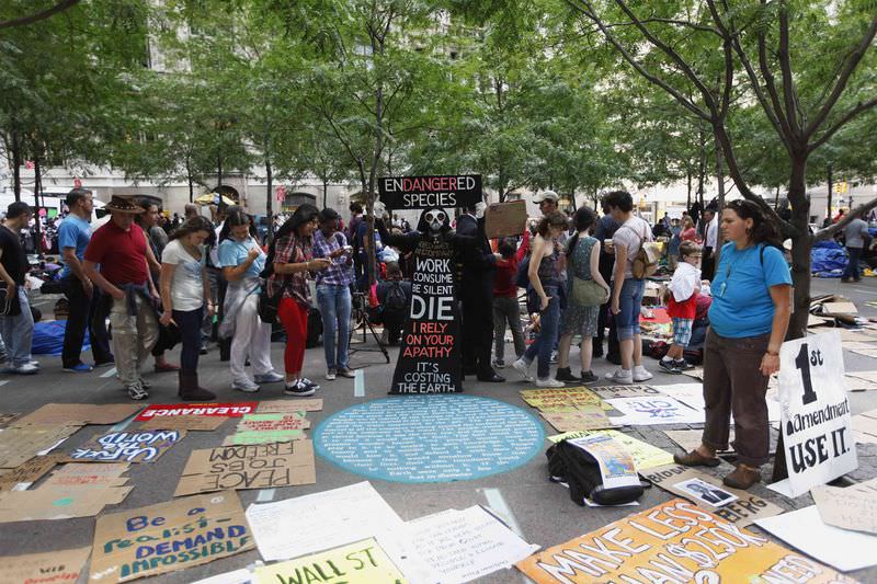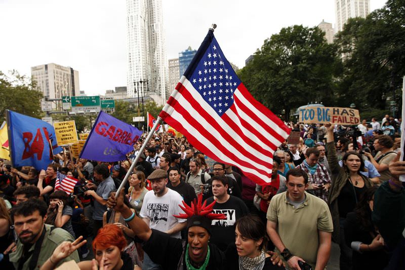 New York kentinde yaklaşık 2 bin kişi, daha önce işgal ettikleri dünya finansının sembol caddesi Wall Street'te bir yürüyüş yaparak ekonomik krizin etkilerini protesto etti.