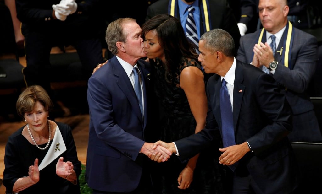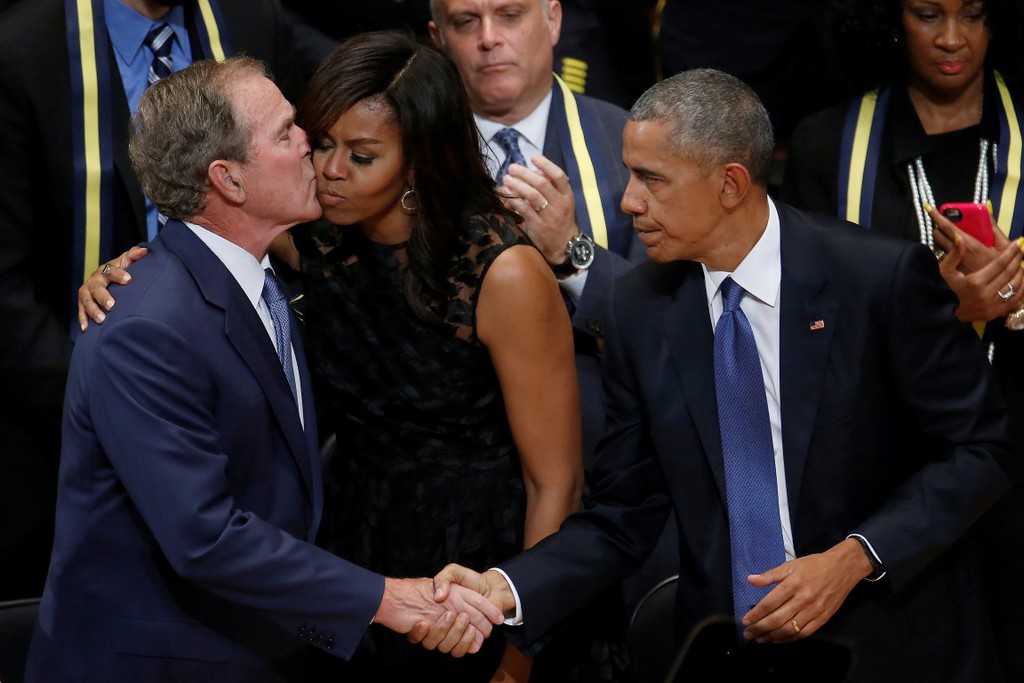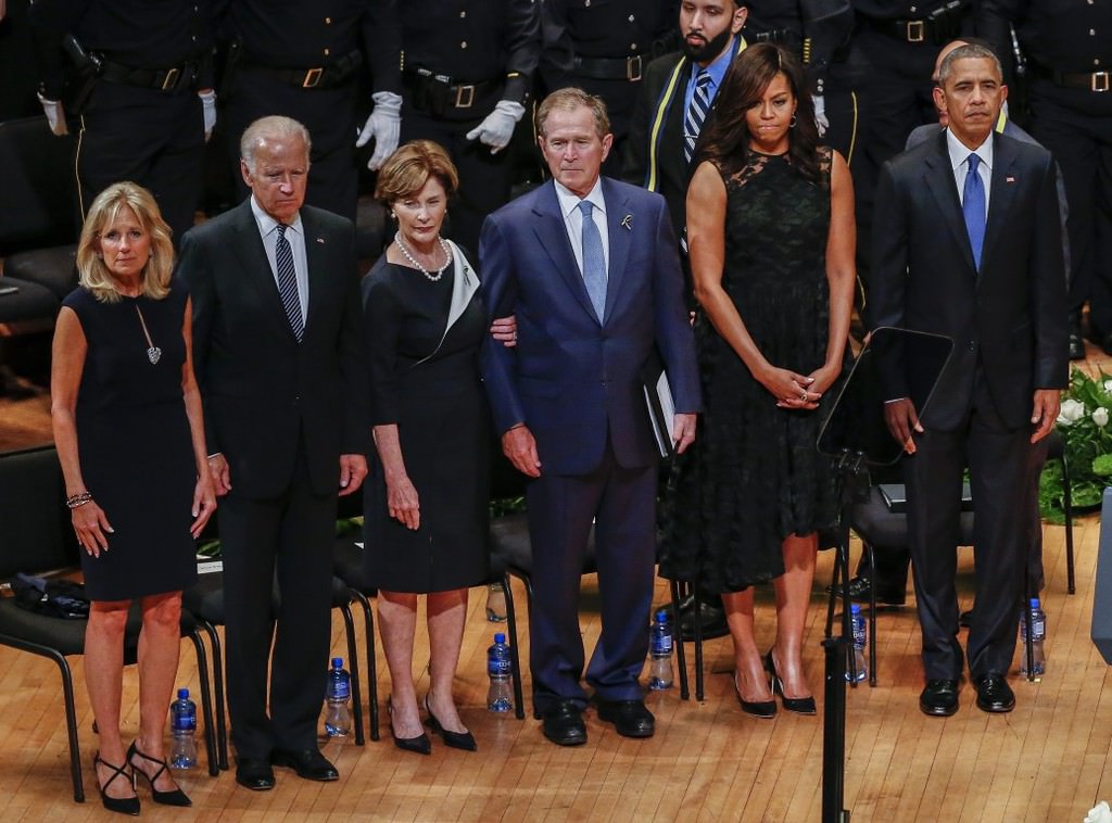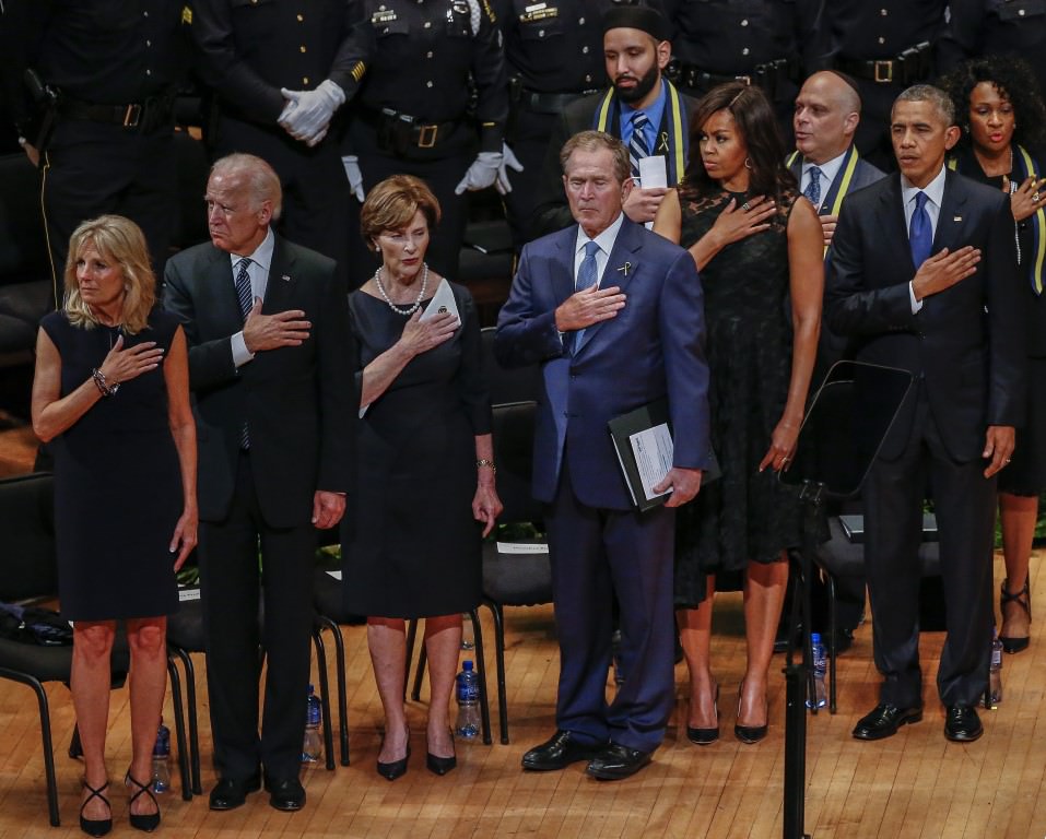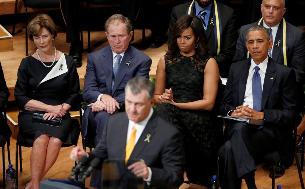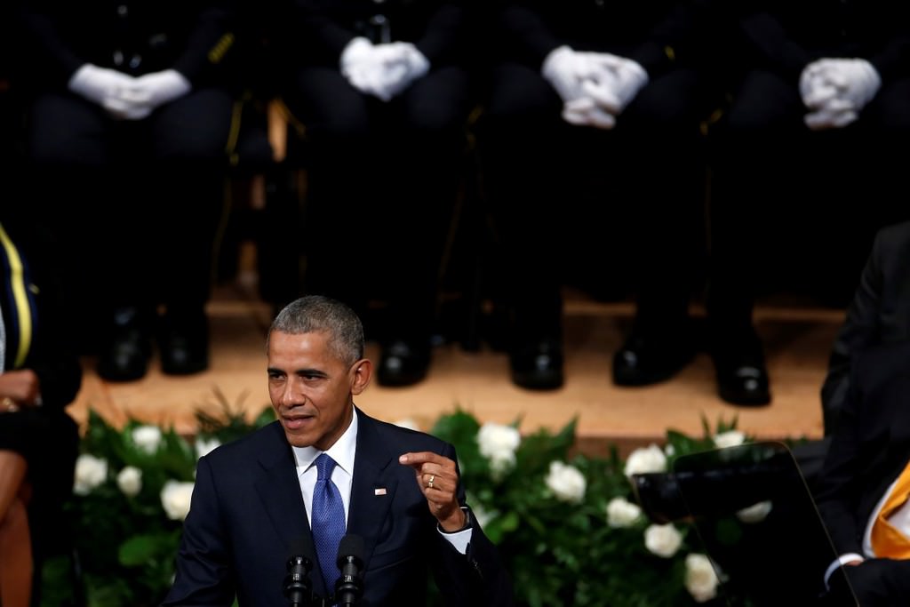 Obama, 7 Temmuz Perşembe günü Dallas'ta keskin nişancı saldırısı sonucu hayatını kaybeden beş polis memuru için Morton H. Meyerson Senfoni Merkezi'nde düzenlenen törene katıldı.