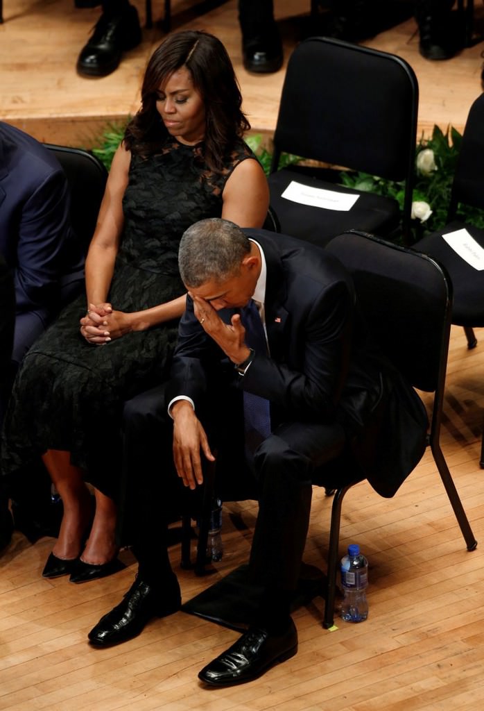 Konuşmasının bir bölümünde gözyaşlarına hakim olamayan Obama, saldırı anında orada bulunan polislerin kendilerini kurşundan sakınmadıklarını ve "cesurca" davrandıklarını ifade etti.