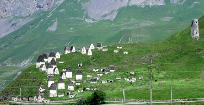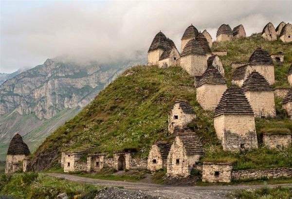 Dünyanın en gizemli şehri! Giden geri dönemiyor... Rusya'nın Kuzey Osetya bölgesinden geçen 5 sıradağın birine kurulu olan gizemli bir şehir. Kafkas Dağları yamacında bulunan Dargavs, yüzlerce yıl önce yaşamış olan binlerce ölünün mezarına ev sahipliği yapıyor.