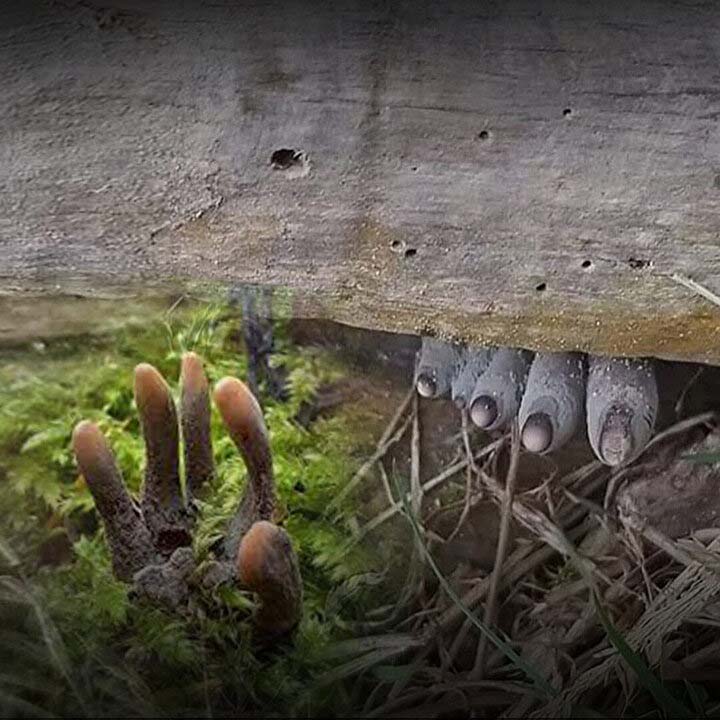 Mantar meraklısı 31 yaşındaki Roberts, yeşillikler arasında gezinirken, 'ölü adamın parmakları' ile karşılaştı.
