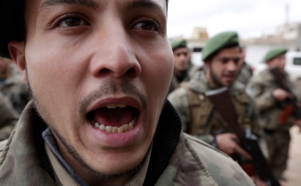 Suriye'nin Kuzeyinde ÖSO kontrolündeki Azez şehri yakınlarında Türk askerlerin eğitim verdiği Özgür Suriye Ordusu Eğitim Kampı. Afrin Harekatı'nda görev alacak ÖSO askerleri, Türk Sİlahlı Kuvvetleri'nce eğitiliyor.