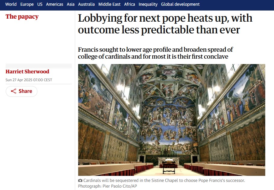 The Guardian'a göre, Papa Francis'in ölümünün ardından Katolik dünyasında papalık için lobi faaliyetleri hız kazandı.