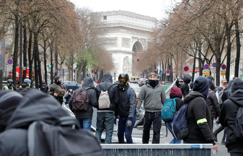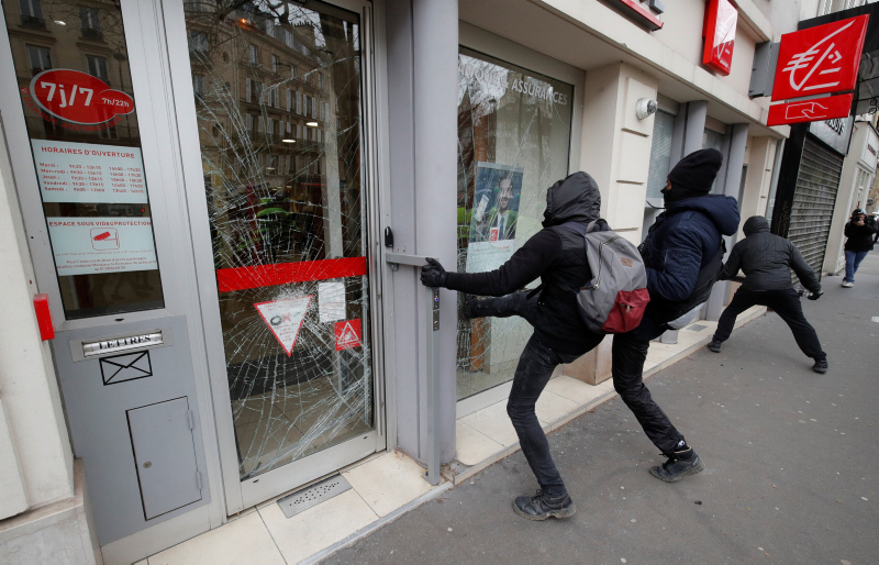Fransa'nın başkenti Paris'te sarı yelekliler gösterilerin 18. haftasında yeniden sokaklara çıktı. Polisin Zafer Takı civarında biber gazı ile müdahale ettiği göstericiler Champs-Elysees Caddesi'ndeki mağazaları yağmaladı.