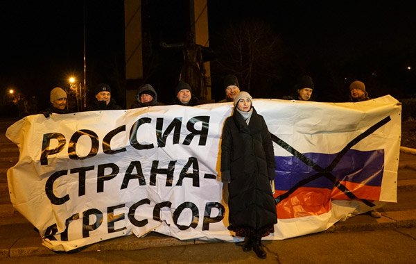 Azak Denizi kıyısındaki Mariupol'deki göstericiler ise 'Azak Denizi'ne kuşatmaya hayır' yazan bir pankart açtı.
