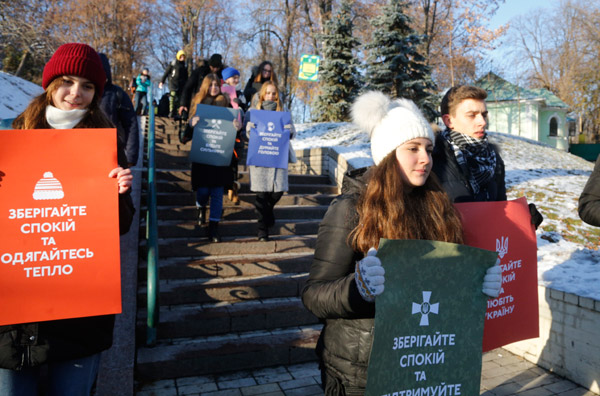 Dün başkent Kiev'de sokağa çıkan öğrenciler, 'Sakin olun ve sıkı giyinin' yazılı pankartlar taşıdı.