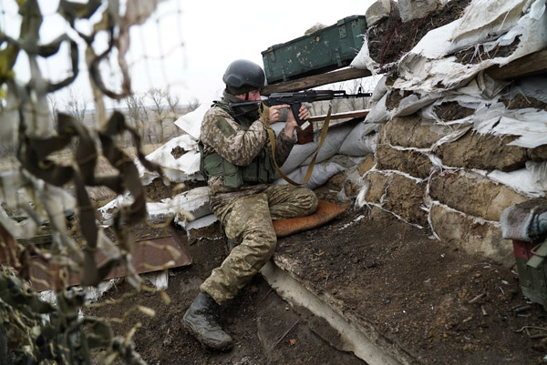 Mevzilerdeki askerlerin elleri tetikte.