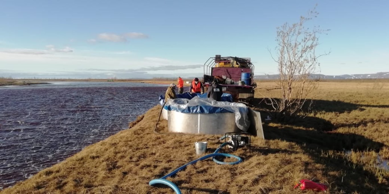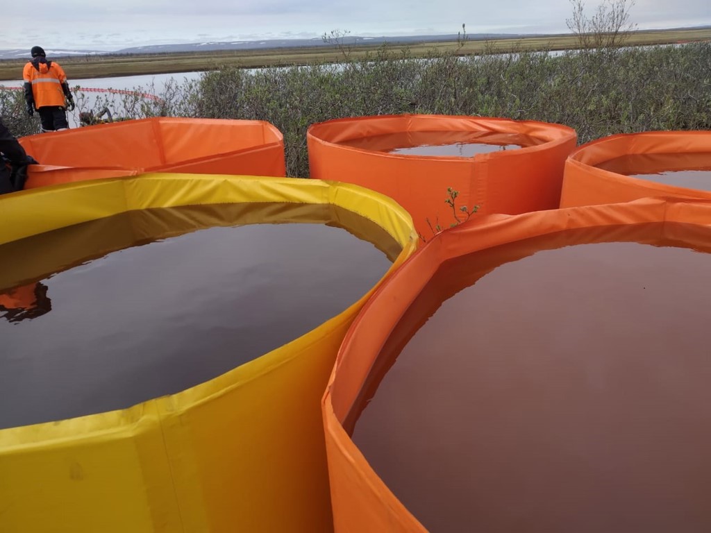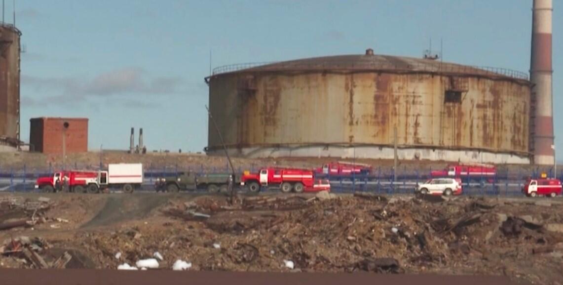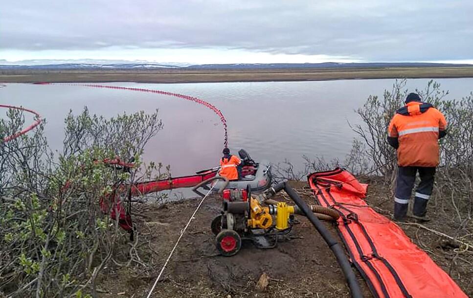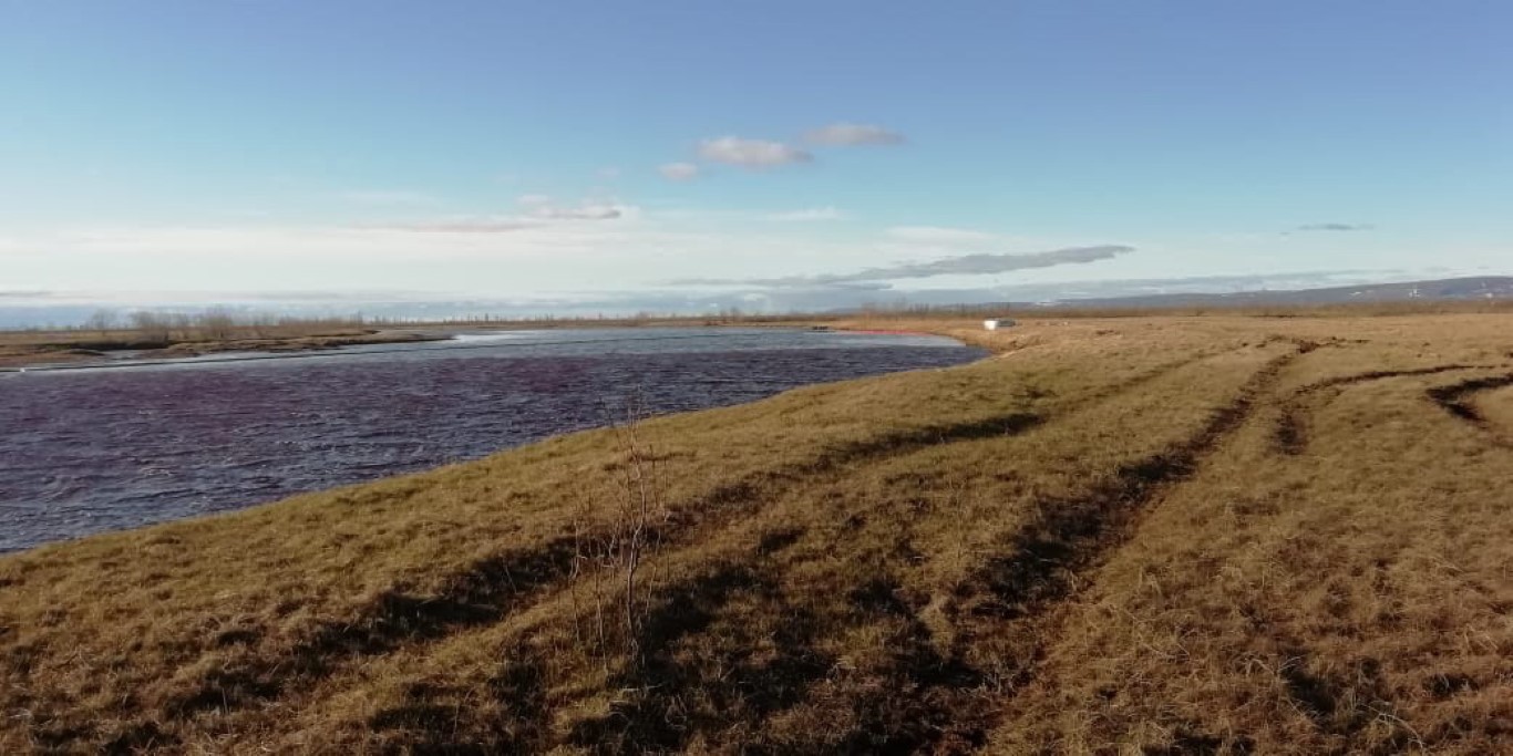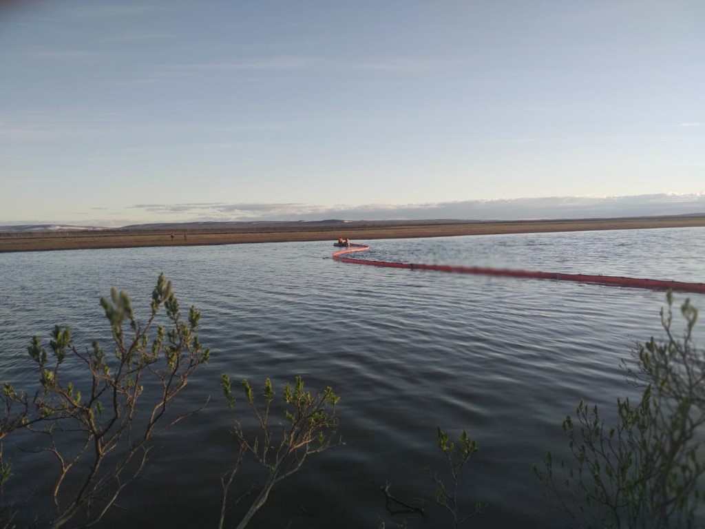 Kuzey Kutup Bölgesi'nde Norilsk kentindeki santralde Cuma günü bir tankının çökmesi sonucu nehrin üzerinde büyük bir yakıt tabakası oluştu.