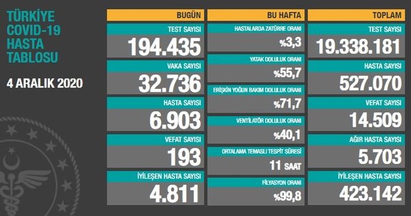 Ülkede, son 24 saatte virüs nedeniyle hayatını kaybeden sayısı 508 artarak 42 bin 684'e, iyileşen kişi sayısı da 27 bin 644 artışla 1 milyon 916 bin 396'ya ulaştı.