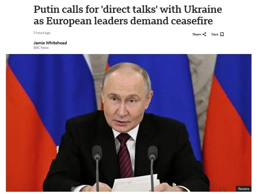 BBC (İngiltere): "Putin'den Avrupa'nın Ateşkes Çağrısına Yanıt: İstanbul'da Doğrudan Görüşme Önerisi"
