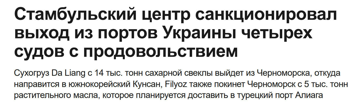 "Türkiye Savunma Bakanlığından yapılan açıklamada, dördü Çernomorsk, ikisi Odessa ve biri de Yuzni'den olmak üzere tahıl ve gıda maddesi taşıyan yedi geminin daha son bir günde Ukrayna'nın Karadeniz limanlarından yola çıktığı kaydedildi. Türkiye ile Birleşmiş Milletlerin aracılık ettiği güvenli geçiş anlaşması uyarınca Ukrayna'ya gidecek olan beş gemi pazar günü Türk yetkililer tarafından kontrol edilecek."