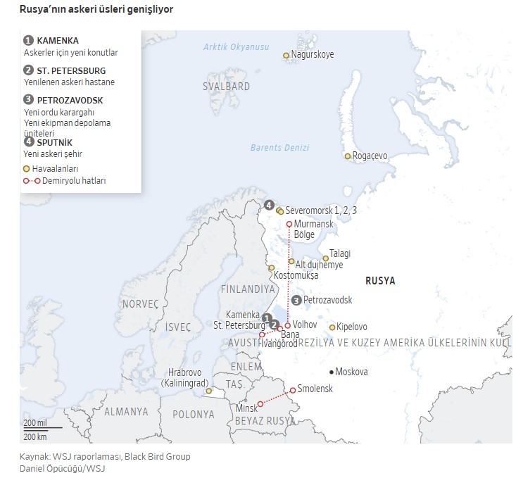 Wall Street Journal'ın haberine göre, Kremlin, Finlandiya sınırına yakın bölgelerde yeni ordu karargâhları kuruyor, askeri altyapıyı güçlendiriyor ve askeri personel sayısını hızla artırıyor. Batılı askeri ve istihbarat yetkililerine göre, bu hazırlıklar, Rusya'nın NATO ile olası bir çatışmaya karşı kapsamlı bir askeri strateji geliştirdiğini gösteriyor.