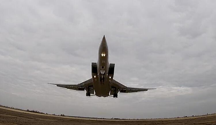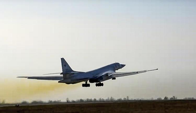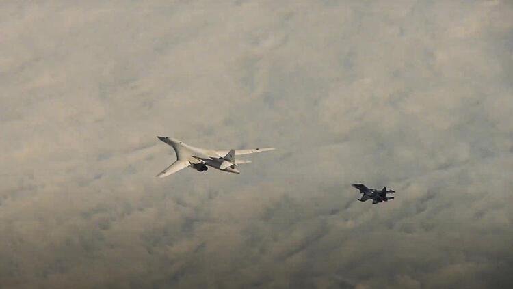 Nükleer füze de taşıyabilen iki Tu-22M3 bombardıman uçaklarının yanında diğer Rus jetleri vardı, resmi medyanın ekrana getirdiği görüntüler dünya çapında yankı buldu.