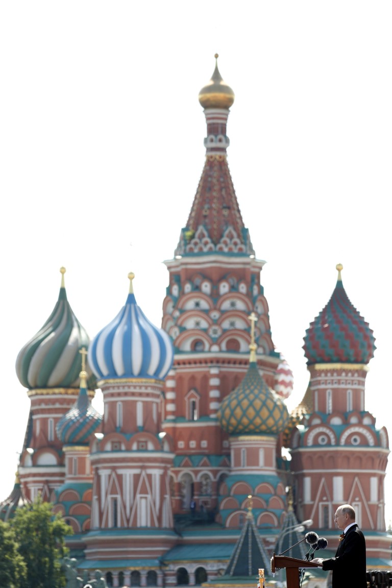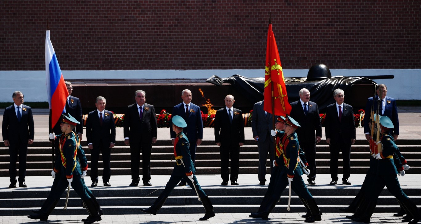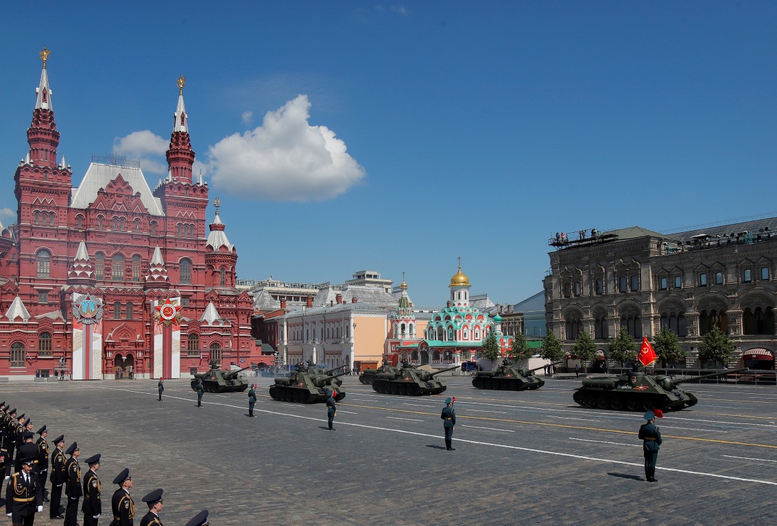 Rusya'da Sovyetler Birliği'nin 2. Dünya Savaşı'nda Nazi Almanyası'na karşı zafer kazanmasının 75. yıl dönümü dolayısıyla askeri geçit töreni yapıldı. Gövde gösterisine dönüşen geçit töreninde, orta menzilli uçaksavar sistemi "Pantsir"in üç yeni modelinin yanı sıra dünyanın tek üçüncü nesil tankı "Armata", "Kurganets-25", "T-90M" ve "T-80BVM" tankları, "Derivatsiya-PVO", "S-400", "S-300B4" ve "S-350" hava savunma sistemleri sergilendi. Törende bir de büyük tepki toplayan görüntü vardı. İşte haberin detayları...