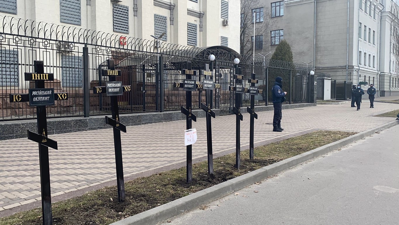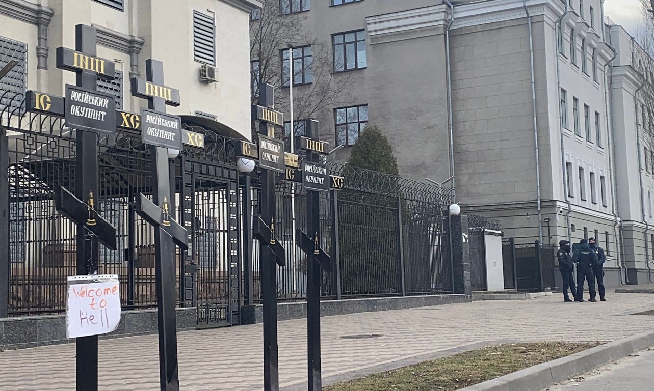 Rusya, Ukrayna'nın başkenti Kiev'deki büyükelçilik binasındaki bayrağını indirdi. Dünkü gösterilerde bina korkuluklarına bırakılan "Cehenneme hoş geldiniz" yazısı ise dikkat çekmişti. Öte yandan OHAL ilan edilen Ukrayna'da polisin dün gösterilere sahne olan Rusya büyükelçilik binası önündeki geniş güvenlik tedbirleri artarak devam ediyor.