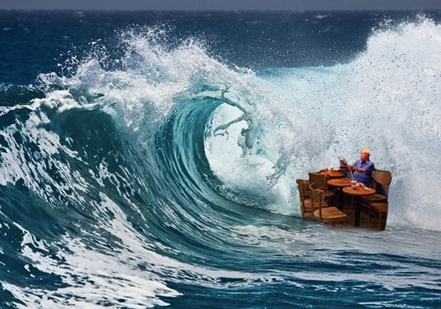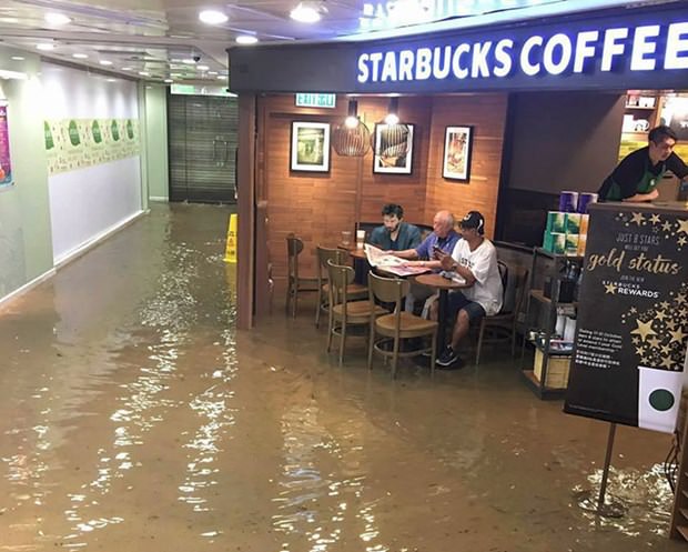 Tayfun nedeniyle geçici süreyle kullanılmaz hale gelen bir AVM'deki kafede oturan yaşlı adamın çevresinde yaşananlara karşı takındığı tavır adeta günün konusu oldu.