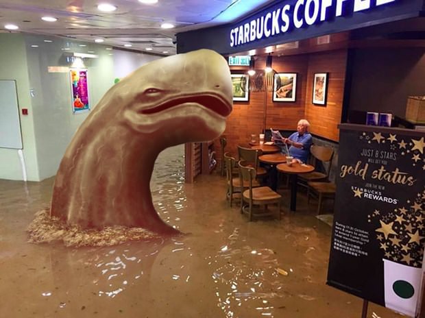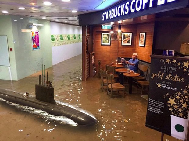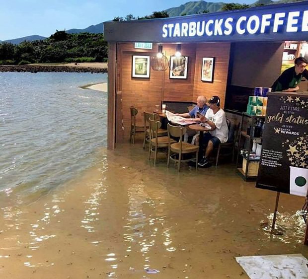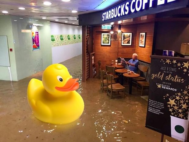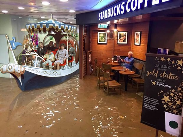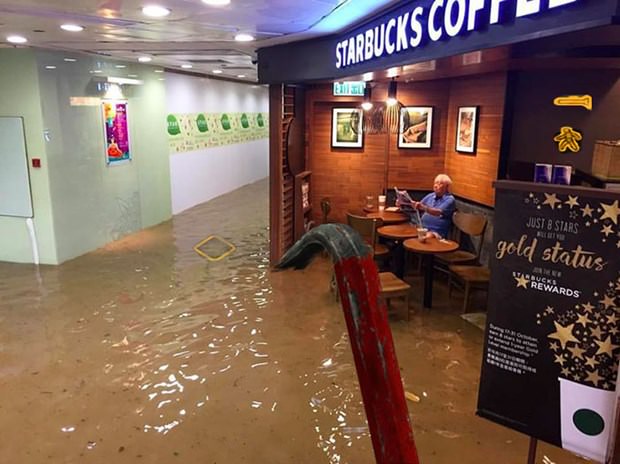 Filipinler'i adeta yıkıp geçen Haima Tayfunu Hong Kong'a ulaştı. Pek çok binada su basmalarına yol açan tayfun oldukça ilginç bir görüntünün de ortaya çıkmasına neden oldu.