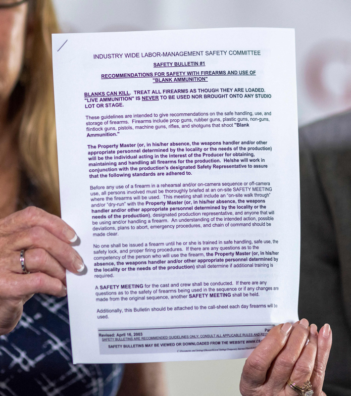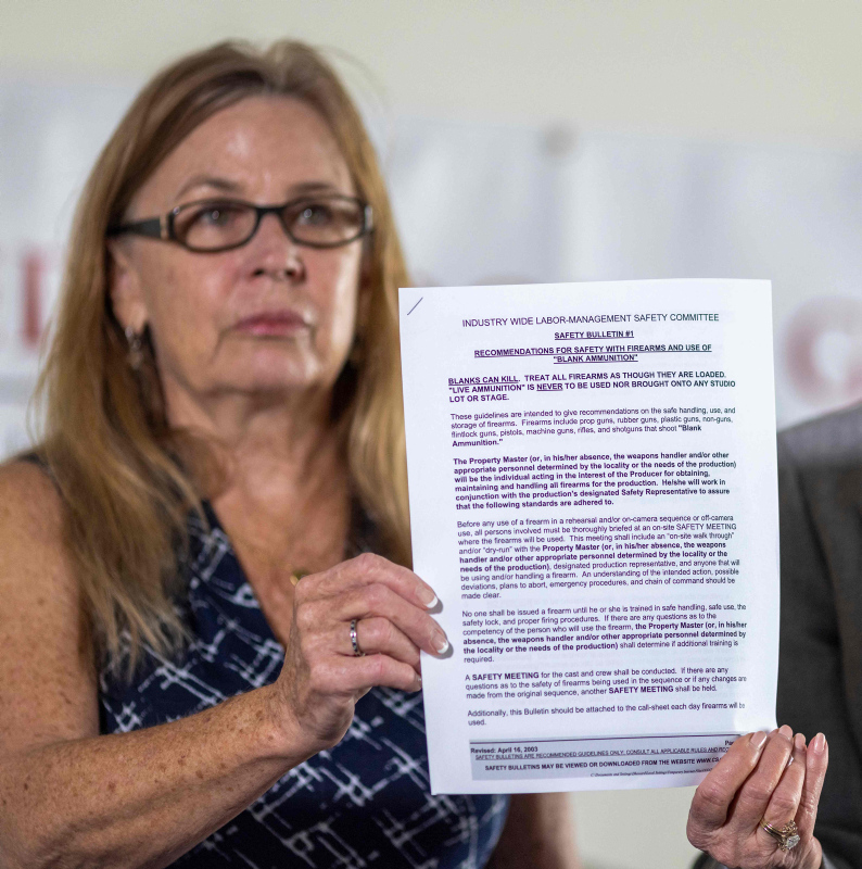 Çarşamba günü yapılan basın toplantısında Mitchell'ın avukatı Gloria Allred, Baldwin'in ve yapımcıların "dikkatsiz" davrandığını belirterek, yapımcıları güvenlik protokollerine uymamakla suçladı.