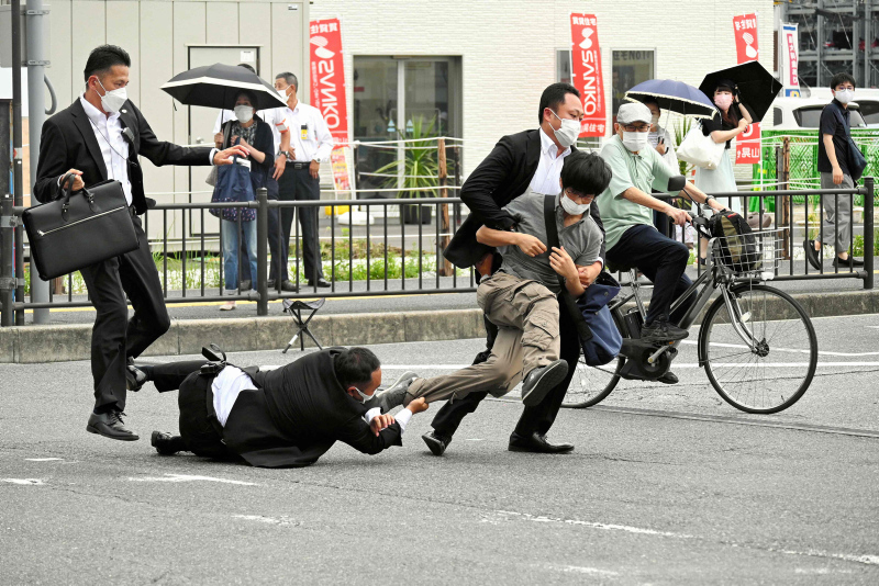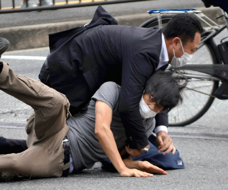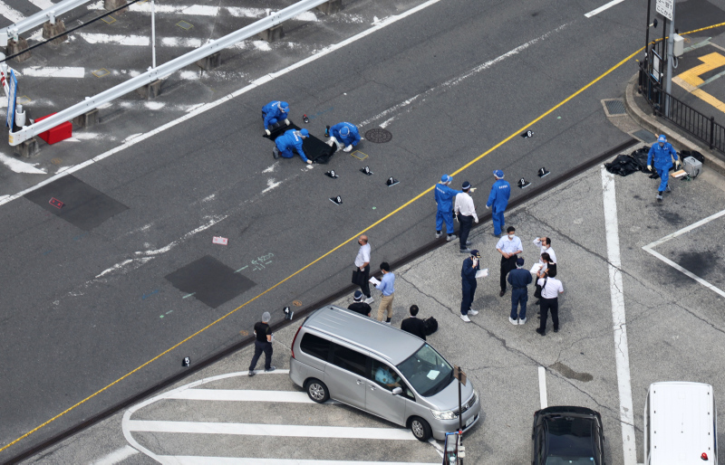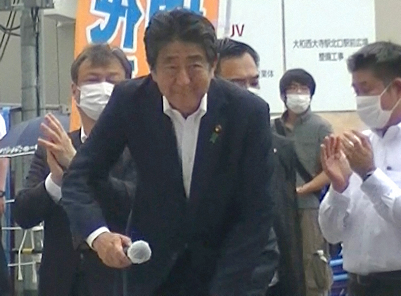 Abe'nin Nara kentinde seçim konuşması yaptığı sırada vurulduğu ana ait görüntülerde, Abe konuşma yaptığı sırada 2 el silah sesi duyulmuş, ikinci silah sesinin ardından Abe yere yığılmıştı.