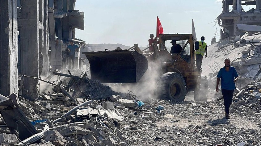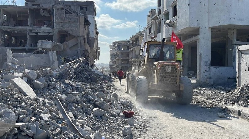 Gazze'de enkaz kaldırma çalışmaları sırasında buldozerlerdeki Türk bayrağının dalgalandığı anlara atıfta bulunulan analizde, şunlar kaydedildi: