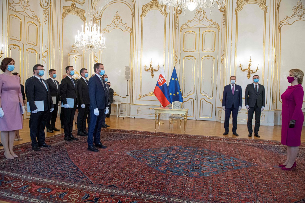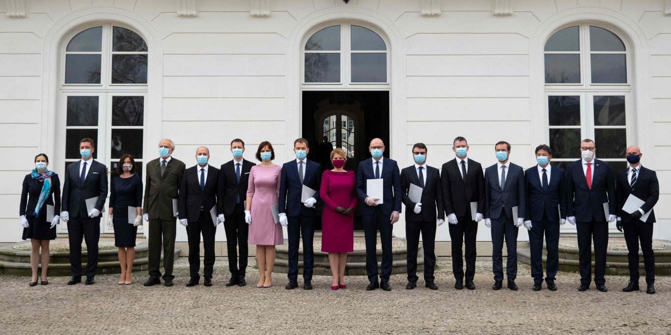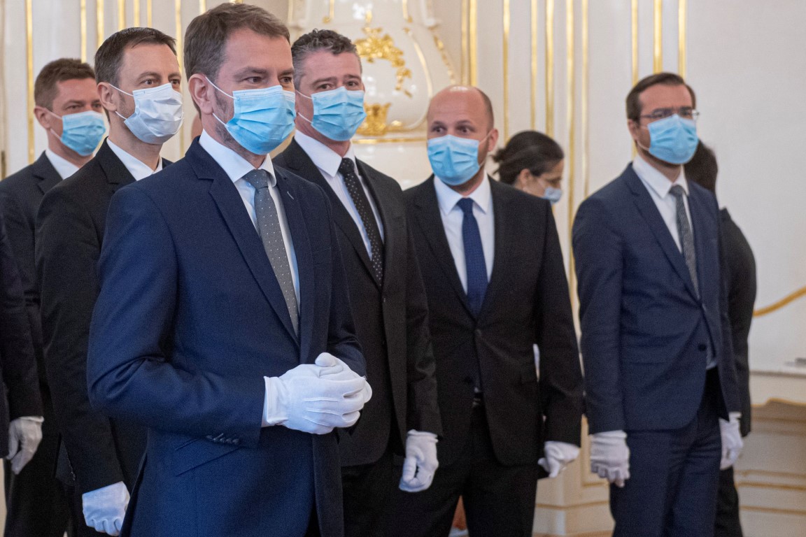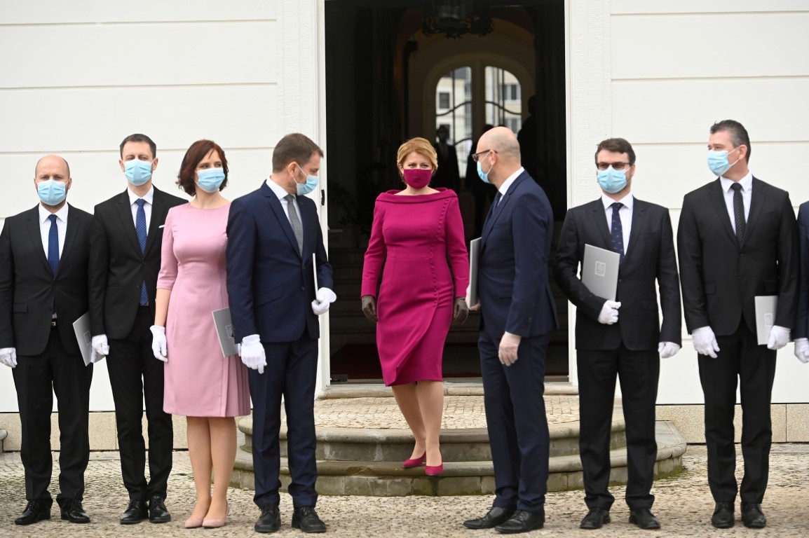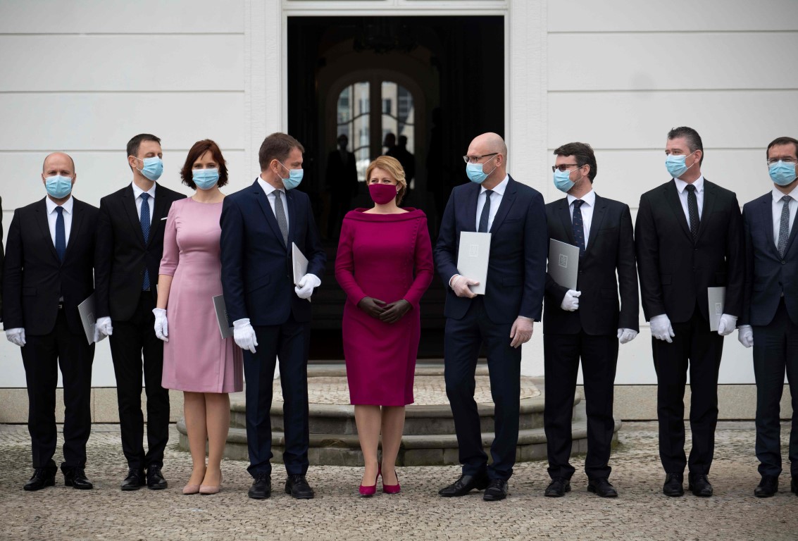 Yeni atanan başbakan Igor Matovic ve kabinesi, Bratislava'daki Başkanlık Sarayı'nda gerçekleşen törene Koronavirüs önlemi alarak katıldı.