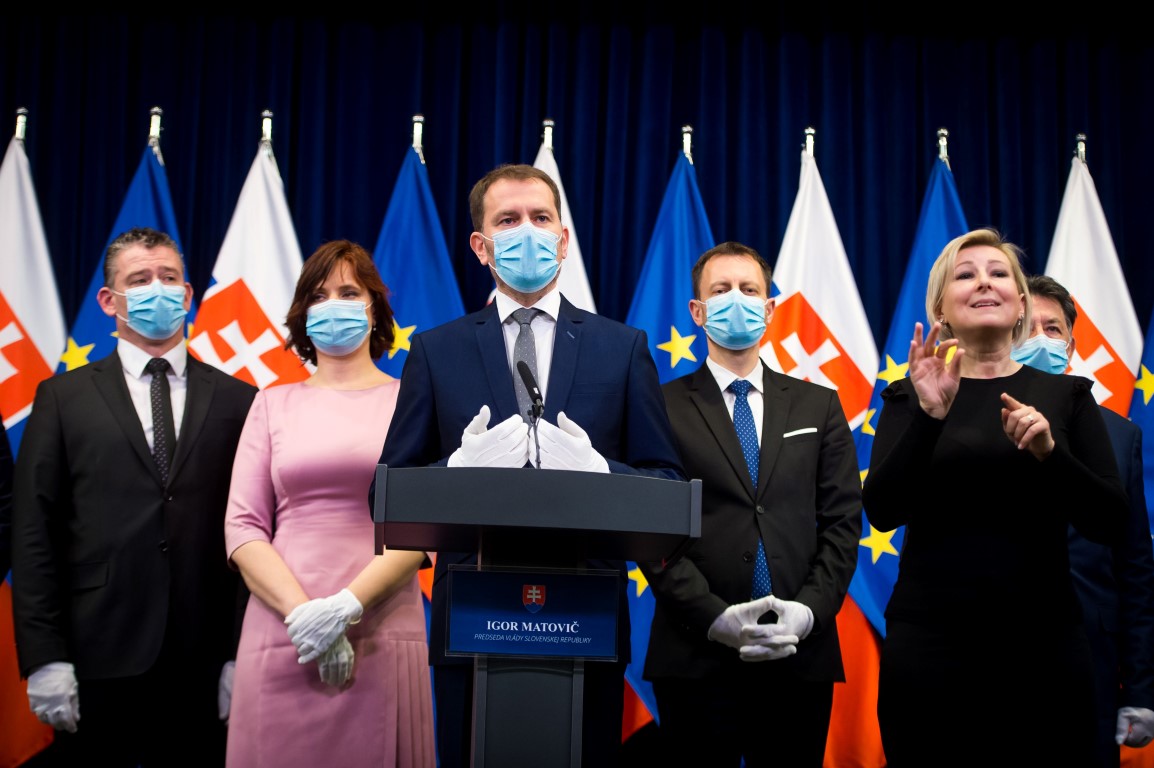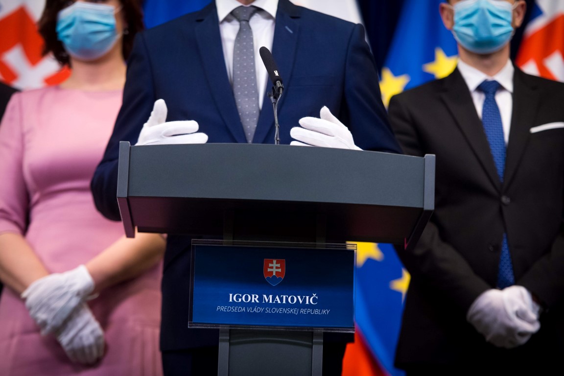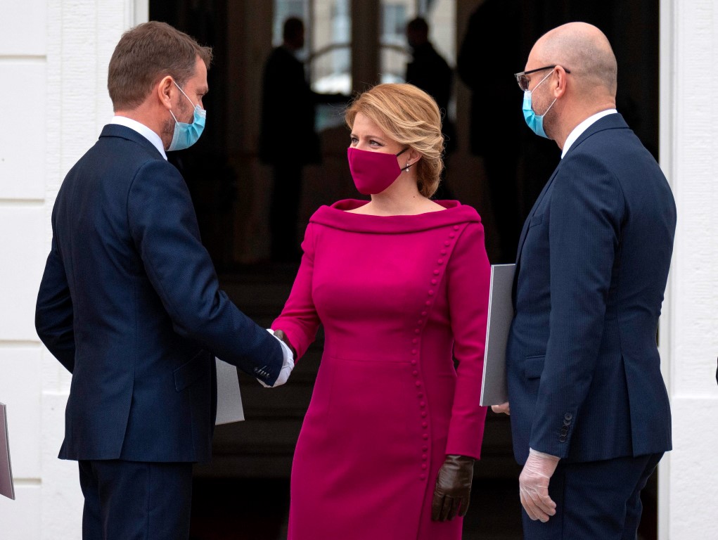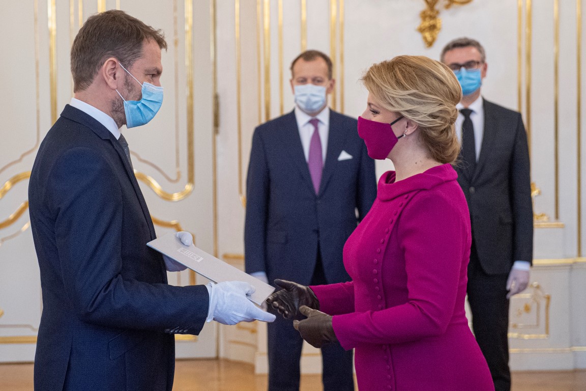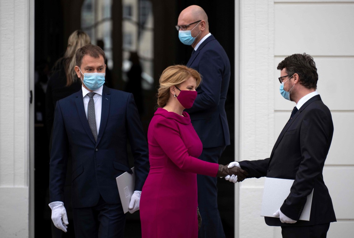 Yeni atanan başbakan Igor Matovic ve kabinesi, Bratislava'daki Başkanlık Sarayı'nda gerçekleşen törene Koronavirüs önlemi alarak katıldı.