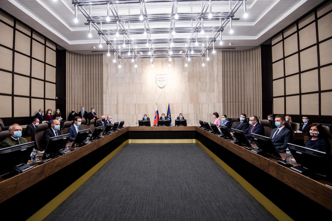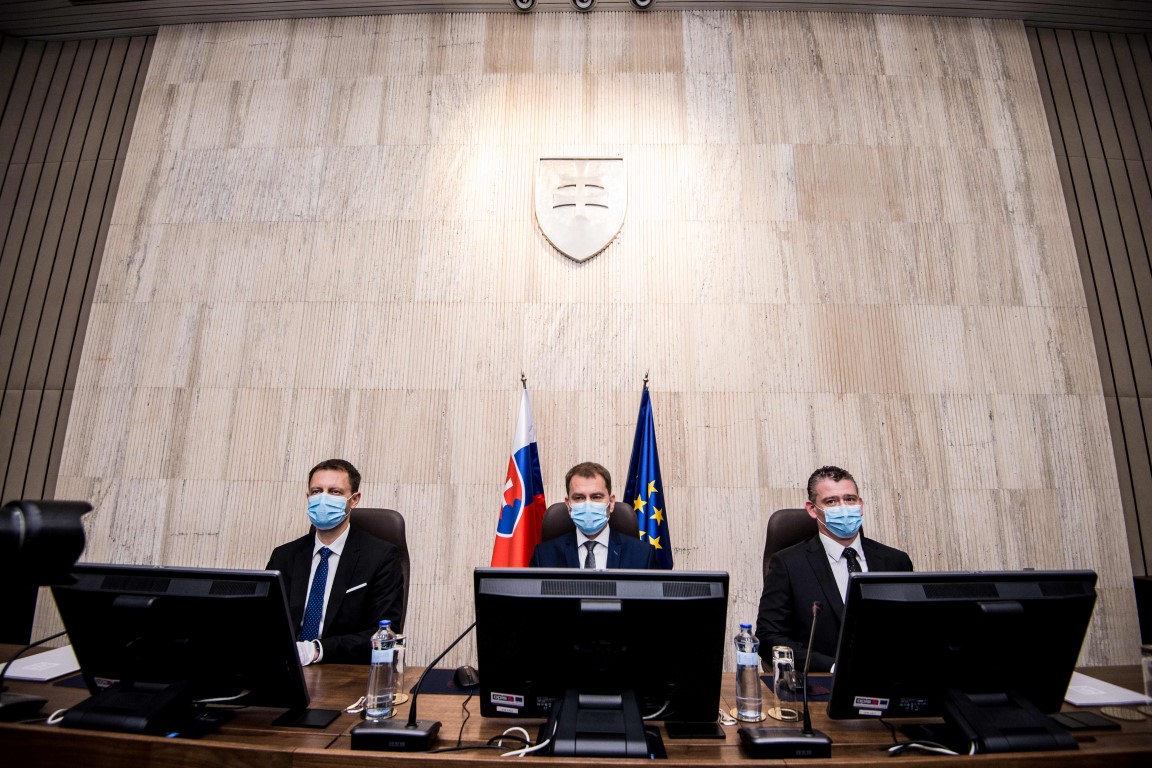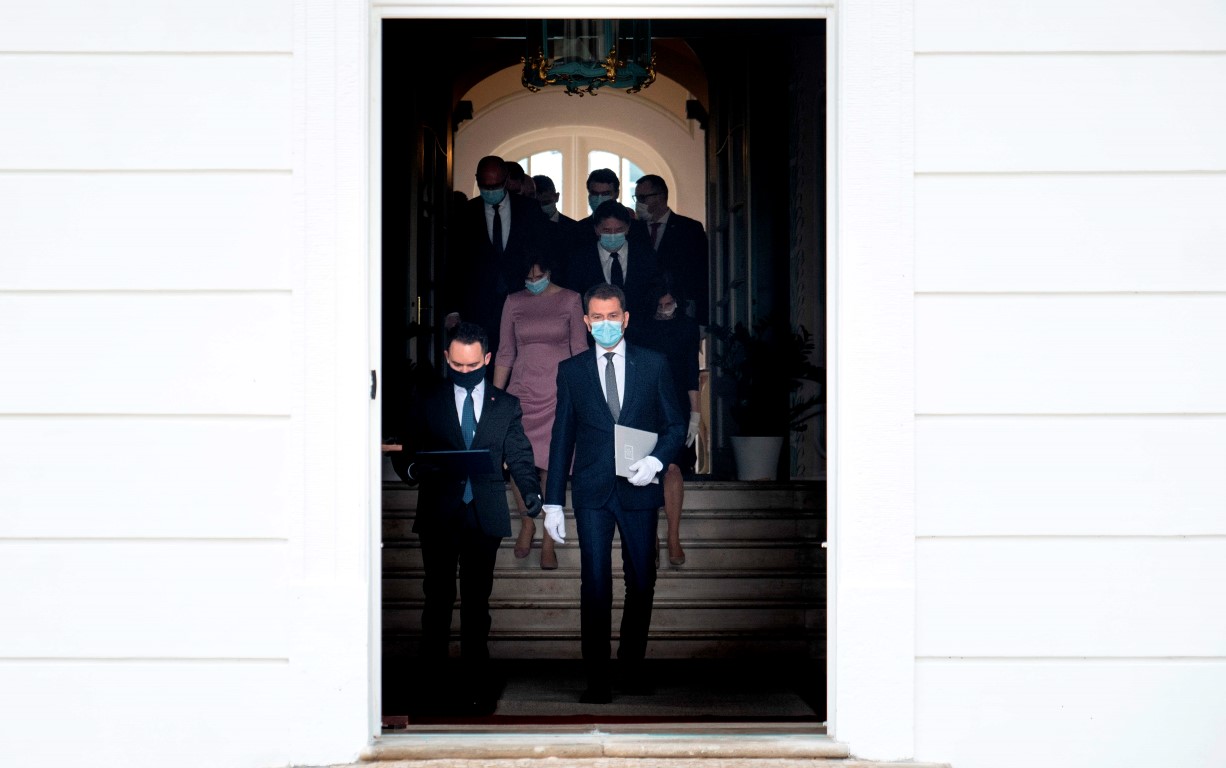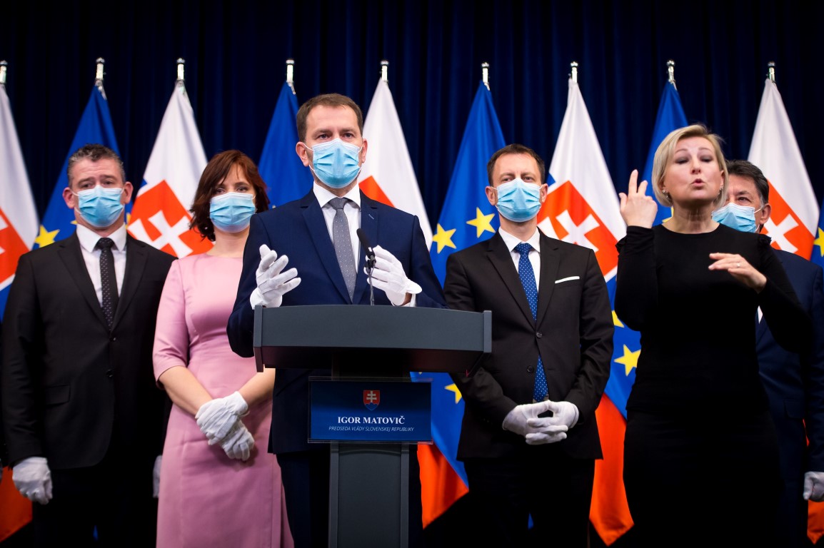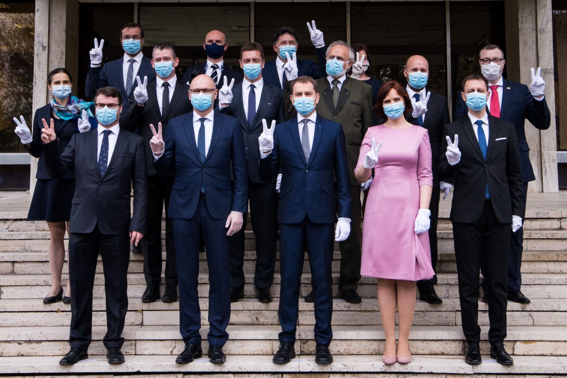 Yeni atanan başbakan Igor Matovic ve kabinesi, Bratislava'daki Başkanlık Sarayı'nda gerçekleşen törene Koronavirüs önlemi alarak katıldı.