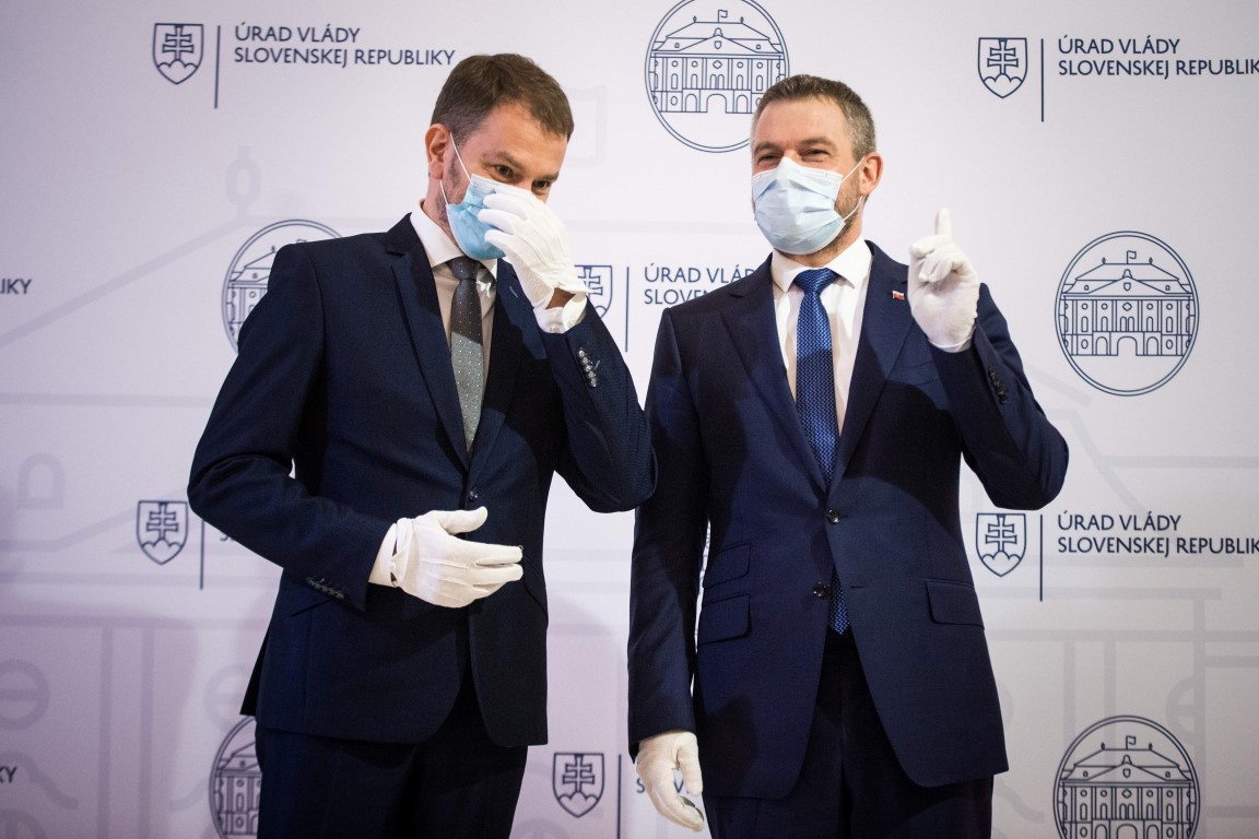 Slovakya'da yeni Başbakan Igor Matovic'in yemin töreninde dikkat çeken Koronavirüs önlemi