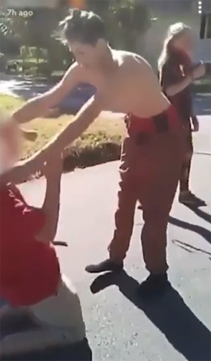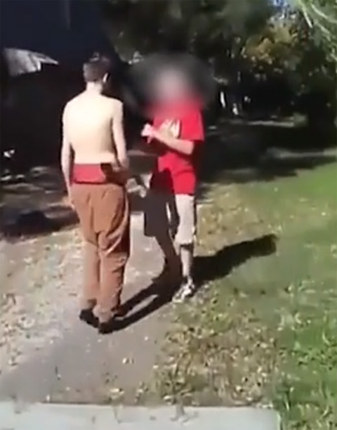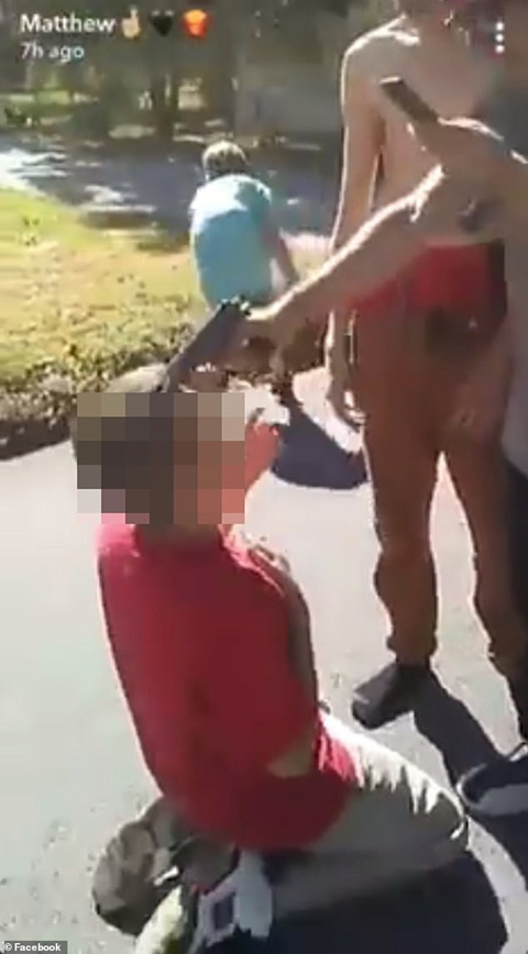 Independence kentinde bir grup genç, sokak ortasında bir çocuğun başına silah dayadı.