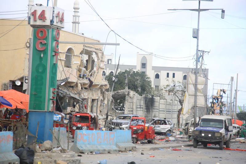 Olay yerinde incelemelerde bulunan Cumhurbaşkanı Hasan Şeyh Mahmud terör saldırılarında en az 100 kişinin öldüğünü ve 300'den fazla kişinin yaralandığını söyledi.