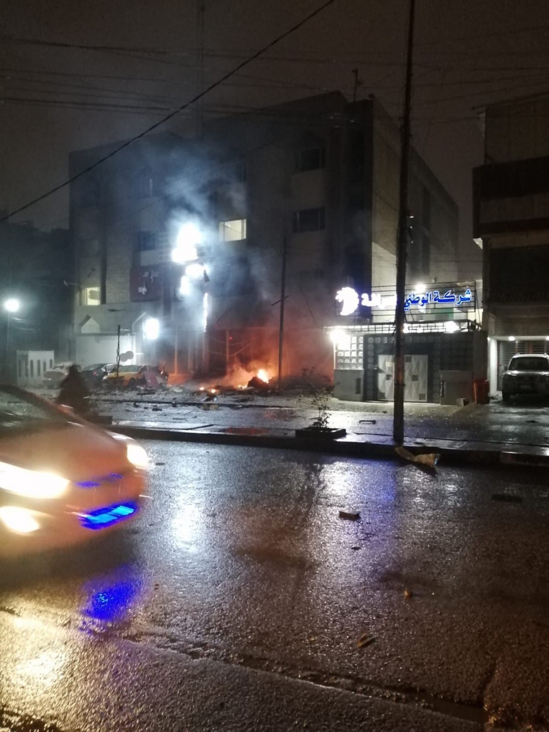 Irak'ın başkenti Bağdat'ta iki yarı patlama meydana geldi. Patlamalardan birinin başkentin merkezindeki el-Kerrade bölgesindeki Vasik Meydanı'nda yer alan Cihan Bankası önünde meydana geldiği ve patlama sonucu bankayı korumakla görevli 2 güvenlik görevlisinin yaralandığı aktarıldı.