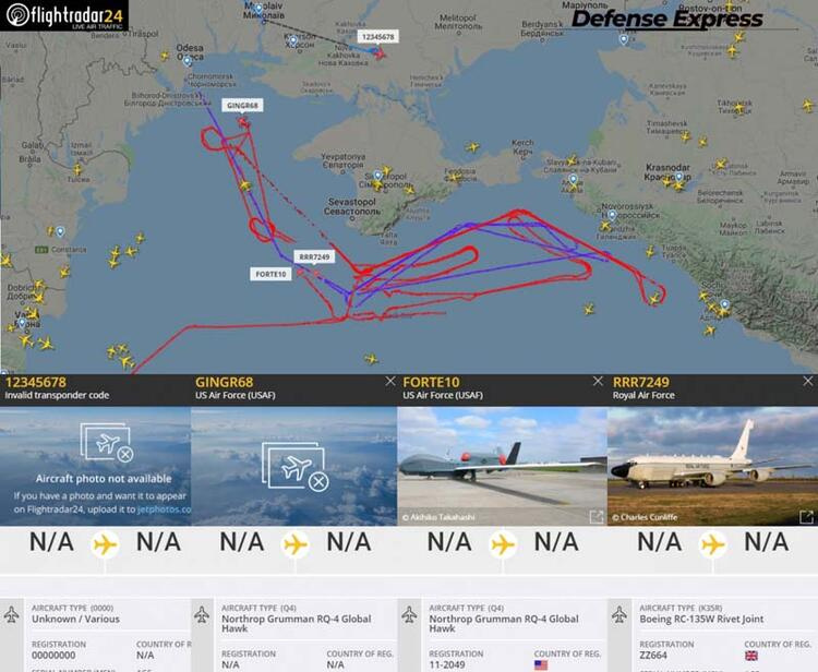 Askeri analist Turan Oğuz, “Bugün ABD'ye ait 2 Global Hawk İHA, İngiltere'ye ait 1 RC-135W ELINT uçağı ve Ukrayna'ya ait 1 İHA Bayraktar TB2 (muhtemelen SIGINT ünitesiyle) Rusya'nın ilhak ettiği Kırım çevresinde uçtu." dedi.