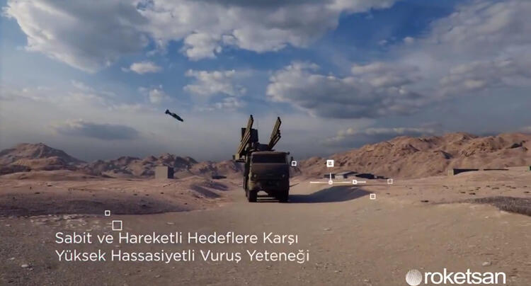 Zırhlı ve zırhsız araçlar, binalar ile su üstü hedeflerini vurabilen yeni füzenin görüntülerini Roketsan yayınladı, kayıtta Rus üretimi Pantsir hava savunma sistemlerinin vurulduğu görüldü.