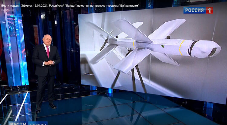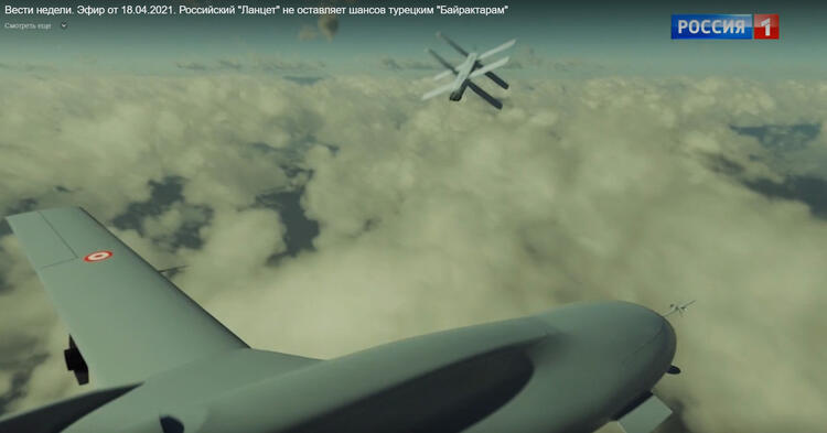 Rusya devlet kanalı Rossiya 1 (Rusya 1), hafta içinde 'Rus Lancet kalkış yaparken Türk Bayraktarlarının şansı yok' başlığıyla bir haberi ekrana getirdi.