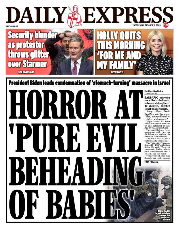 Aynı gün ABD Başkanı Joe Biden, "Teröristlerin çocukların kafasını kestiği teyit edilmiş görüntüleri göreceğimi hiç düşünmemiştim" diyerek yalana resmi bir kimlik kazandırdı. Uluslararası medya, yalan haberin doğruluğunu sorgulamadan manşetlerine taşımaya başladı.