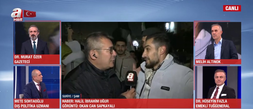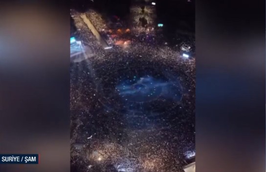 Tabii şu anda gösterdiğimiz görüntü içerisinde dikkatinizi çekiyor mu bilmiyorum ama önceden de yayın yapardık ya da kalabalık kitleleri gösterdiğimizde Suriyeliler yüzlerini gizlerlerdi. Ama şu anda yüzlerini gizlemiyorlar ve kameranın önüne gelip burada el sallıyorlar. Ve aynı zamanda buradan yine selam söylüyorlar. Röportaj yapma noktasında kendilerinin talebi üzerine yapıyoruz. Ama önceden rejim varken buradaki insanlar yüzlerini gizliyorlardı. Ve herhangi bir şekilde fotoğraf çekilmeye dahi izin vermiyorlardı. Çünkü korkuyorlardı. Kendileri Türkiye'de ya da bir başka ülkede olsalar da akrabaları buradaydı, kardeşleri buradaydı. Ve bu nedenle de fotoğraf çektirmeye dahi korkuyorlardı. Ama şimdi o korku geride kaldı. Ve insanlar burada kendi telefonlarıyla, kendi sosyal medyasında ya da bizim gibi yabancı basının olduğu noktalarda rahatlıkla röportaj dahi verebiliyorlar. Dünyaya mesajlarını iletebiliyorlar. Bu da oldukça önemli tabii ki. Bu aslına bakılırsa bir hayaldi."