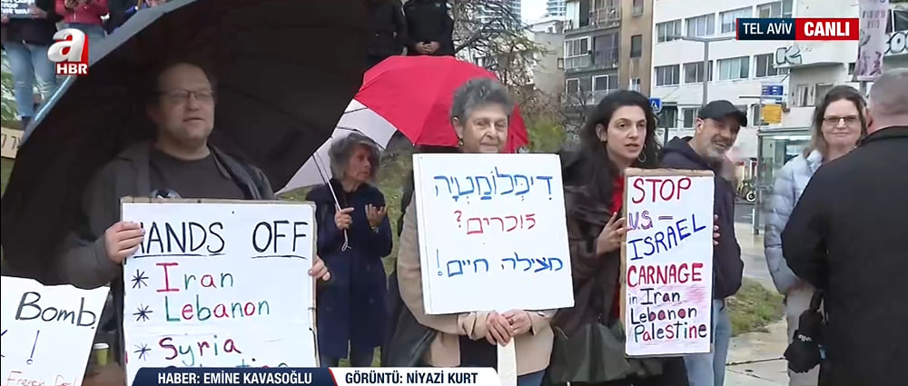 Ortadoğu'da İsrail ve İran arasındaki karşılıklı saldırı trafiği tansiyonu zirveye taşırken, savaşın merkez üssü Tel Aviv'de sular durulmuyor. İsrail hükümetinin savaş politikalarına bayrak açan binlerce kişi, "olağanüstü hal" kısıtlamalarına rağmen meydanları doldurarak Netanyahu hükümetine karşı "kanlı el" protestosu düzenledi. A Haber Programlar Müdürü Emine Kavasoğlu ve kameraman Niyazi Kurt, protestoların kalbi Habima Meydanı'ndan en sıcak görüntüleri anbean aktardı.