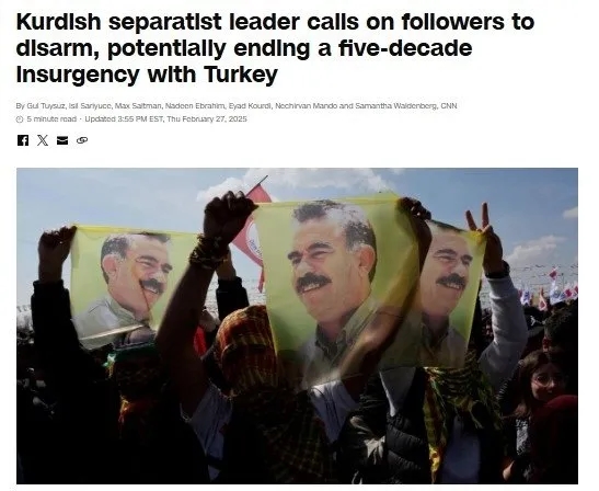 Sabah'ın haberine göre CNN gelişmeyi "Kürt ayrılıkçı lider, takipçilerini silahsızlanmaya çağırıyor ve potansiyel olarak Türkiye ile elli yıllık bir ayaklanmayı sona erdiriyor" sözleriyle manşete taşıdı. CNN haberinde "Türkiye'de barış umutları, Türkiye Cumhurbaşkanı Recep Tayyip Erdoğan'ın girişimleriyle alevlendi." İfadelerini kullandı.