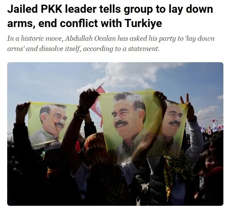 Al Jazeera, "Abdullah Öcalan'ın tarihi bir adım atarak PKK'dan 'silah bırakmasını' ve partiyi feshetmesini istediği bildirildi." sözlerine yer verdi. Haberde, silahsızlanma çağrısının hayata tamamen geçmesi halinde bunun "Orta Doğu'da gerçekleşen en dönüştürücü olaylardan biri" olacağının altı çizildi.