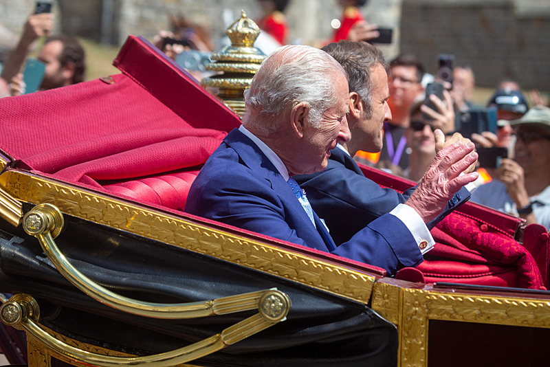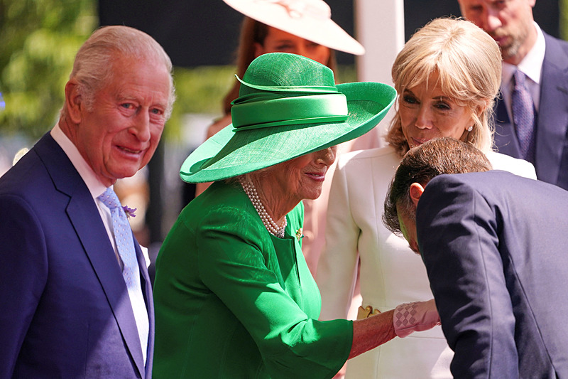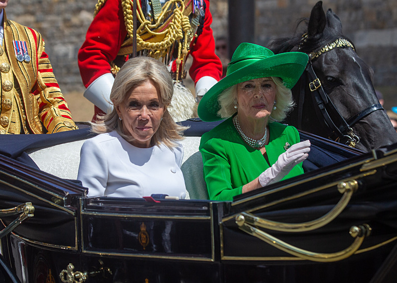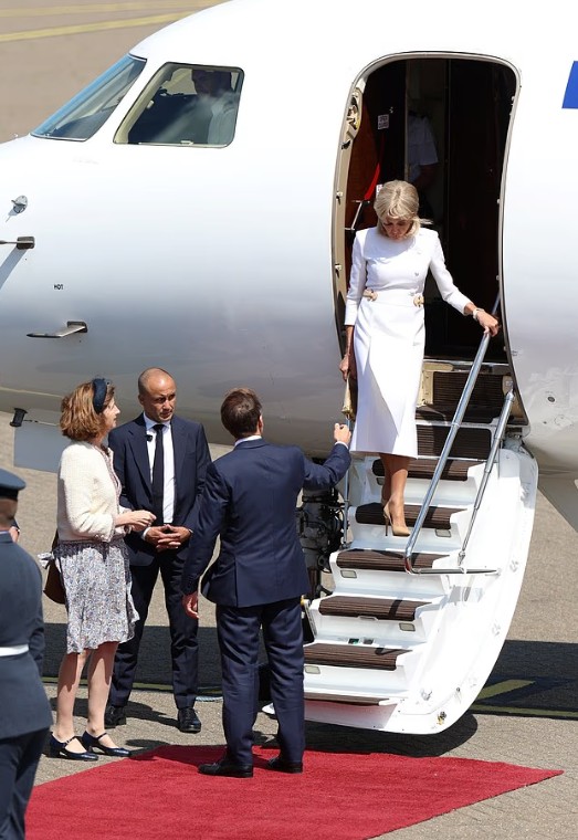 Macron çifti, İngiltere'ye varışlarının hemen ardından Galler Prensi William ve Galler Prensesi Kate tarafından Londra'daki RAF Northolt Hava Üssü'nde karşılandı. Fransa Cumhurbaşkanı ve eşi, burada Kraliyet protokolüne uygun biçimde ağırlanırken, Brigitte Macron'un yüzündeki ifadesizlik ve soğuk tavırlar İngiliz gazetelerinde dikkat çeken yorumlara yol açtı.