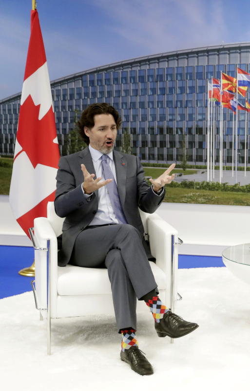 NATO Genel Sekreteri Jens Stoltenberg ile görüşen Kanada Başbakanı Justin Trudeau'nun çorapları dikkatleri üzerinde toplamayı başardı.