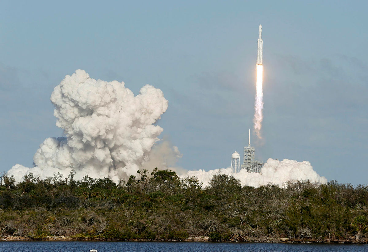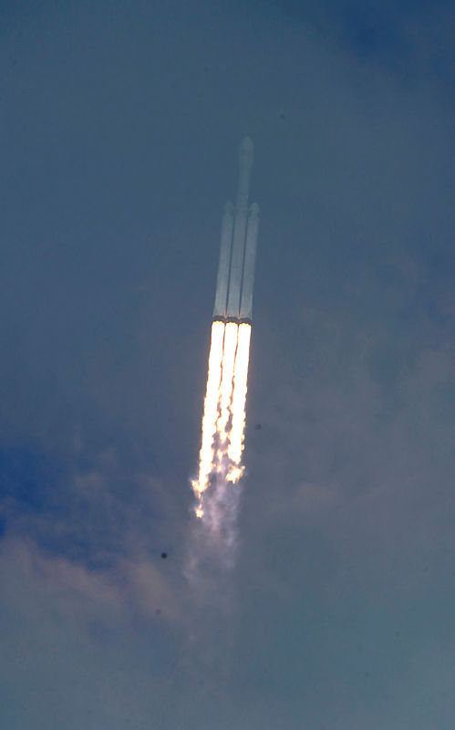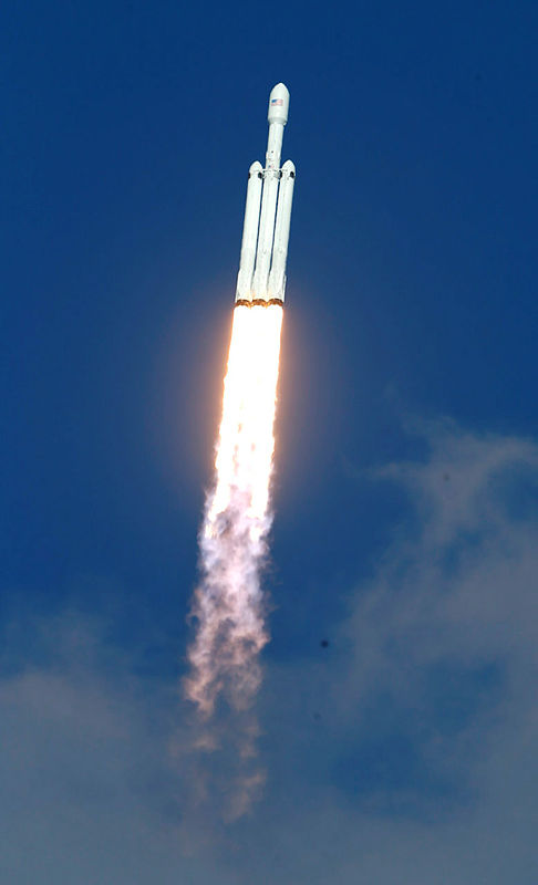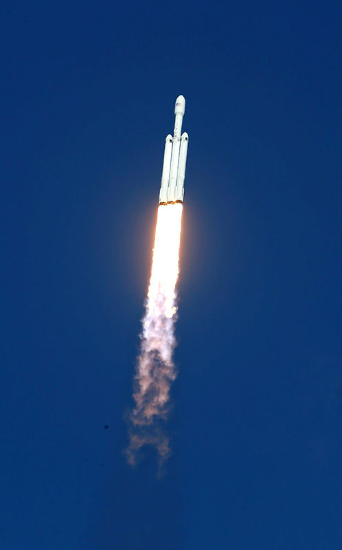 Falcon Heavy, ilk kez fırlatılarak Mars'a doğru yolculuğu başladı. Fırlatma sonrası kapsülden ayrılan roketler dünyaya döndü.
