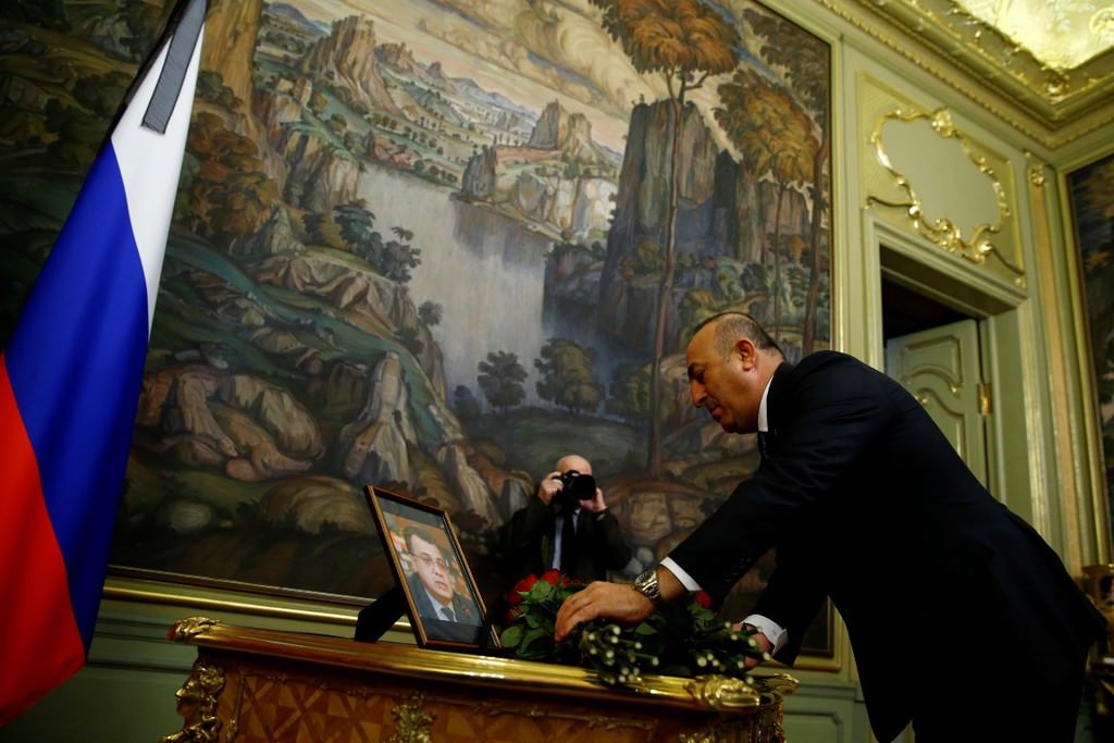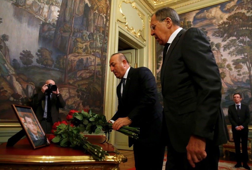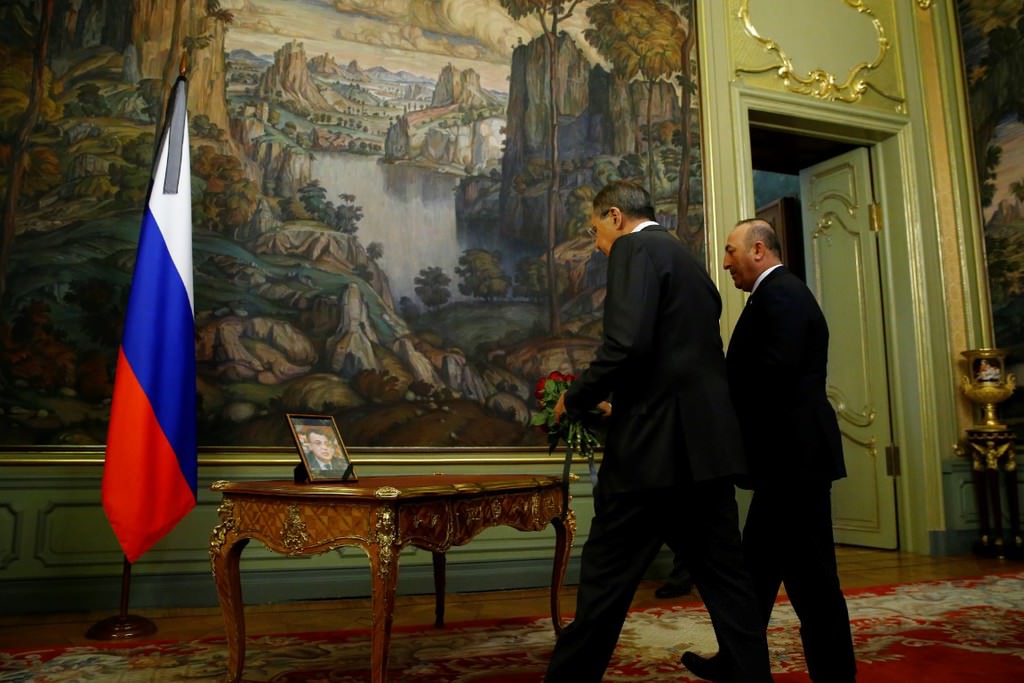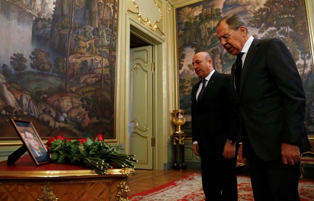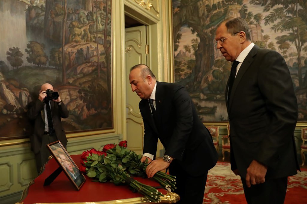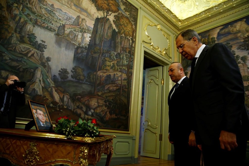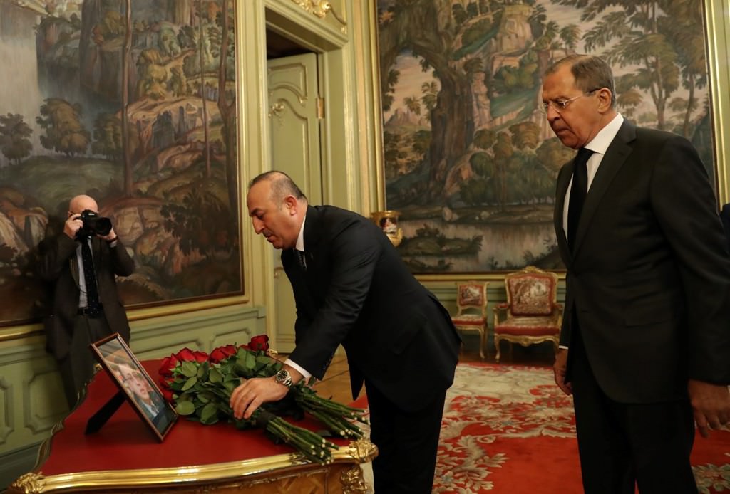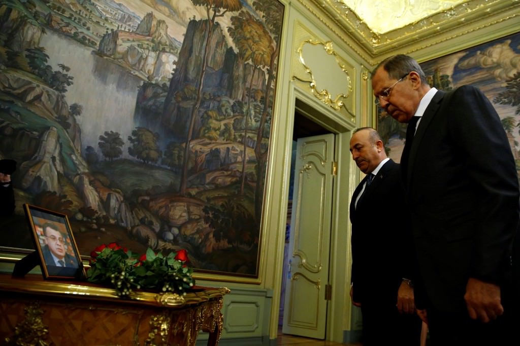 Çavuşoğlu ve Lavrov görüşmeye gelişlerinde büyükelçi Karlov'un fotoğrafının yanına çiçek bırakarak saygı duruşunda bulundular.